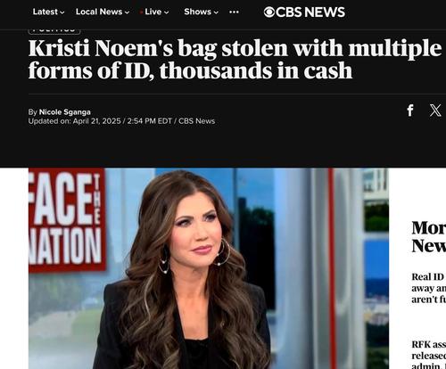 CBS News: Министра внутренней безопасности США Кристи Ноэм обокрали в ресторане Вашингтона
