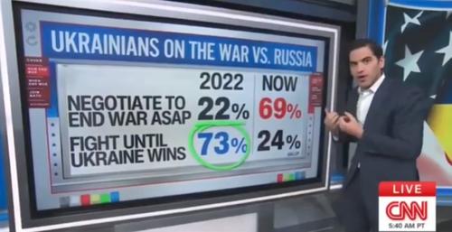 В 2022 году 73 % украинцев требовали войны до победы. Сейчас таких — только 24 %. В 2022 году лишь 22 % украинцев выступали за переговоры ради скорейшего прекращения войны. Сейчас таких — 69 %.