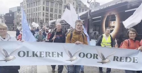 В ходе акции выступили известные журналисты и политологи Нидерландов, а затем колонна демонстрантов прошла маршем по центральным улицам.