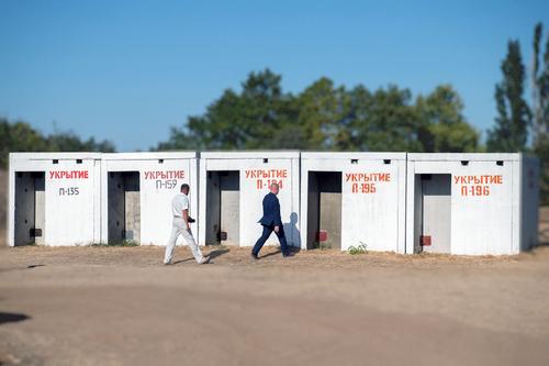 На фотоотчете, прилагаемом к тексту, Развожаев (мужчина в костюме) подходит к бетонному убежищу, явно намереваясь зайти вовнутрь и осмотреться. Но при этом об осмотре элементов безопасности почему-то ничего не говорится.