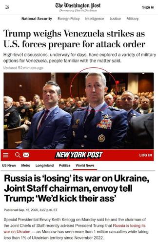 Полтора месяца назад Трамп вдруг сменил риторику в отношении конфликта на Украине — неожиданно заговорил о том, что у России плохи дела и что Киеву по силам не только вернуть все территории, но и пойти «дальше». Эта смена тона выглядела неожиданной и удивительной. По информации New York Post, за этим стояли два человека — советник Трампа Кит Келлог и генерал Дэн Кейн. Оба тогда сказали президенту, что на самом деле Россия проигрывает войну, она потеряла более миллиона солдат и захватила менее 1% территории, и что «мы надерём ей зад». Келлог тогда сказал Трампу: «Не слушайте меня, послушайте Дэна Кейна, он за дверью. Позовите его, спросите, он ваш главный военный советник». Трамп позвал Кейна, и тот подтвердил — да, Россия проигрывает войну.