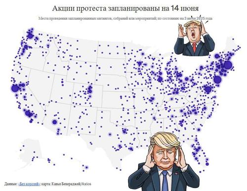 Акция называется «без королей». Она пройдёт в субботу, на фоне военного парада, который власти организуют по случаю 250-летия армии США. В тот же день Трамп будет праздновать свой день рождения.