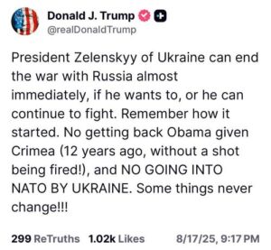 Зеленский может почти сразу закончить конфликт с Россией, если захочет, или может продолжать бороться. Помните, как это началось. Ничего не вернёшь, когда Обама отдал Крым (12 лет назад, без единого выстрела) и никакого вхождения Украины в НАТО. Некоторые вещи никогда не