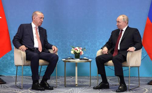 Турецкий президент рассказал, что на встрече с российским коллегой они обсудили пути завершения украинского конфликта «справедливым миром». По словам Эрдогана, Турция выступает за урегулирование конфликта посредством переговоров.