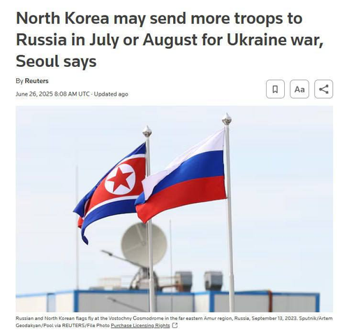 Агентство со ссылкой на данные южнокорейской разведки пишет, что Россия может готовиться к крупномасштабному наступлению в июле или августе.