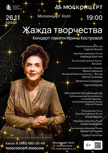 26 ноября в 19:00 в Москве, в Москонцерт-Холле, состоится особенный концерт, посвящённый светлой памяти народной артистки России Ирины Васильевны Костровой — удивительной актрисы, чья творческая жизнь стала примером беззаветного служения искусству. Этот вечер соберёт на одной сцене выдающихся артистов, коллег и друзей Ирины Васильевны, чтобы отдать дань уважения её уникальному таланту.