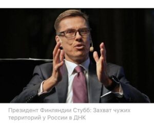 В интервью, которое президент Финляндии дал американским СМИ, он поднял тему «агрессивности русских», утверждая, что в ДНК России заложено стремление к захвату земель. Стубб ссылался на «31 конфликт с Россией начиная с XIV века», при этом игнорируя тот факт, что